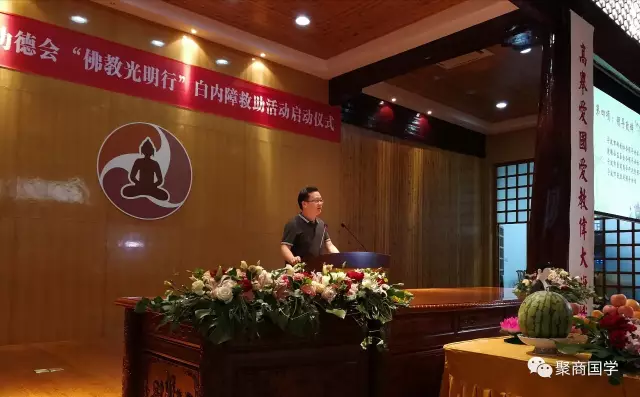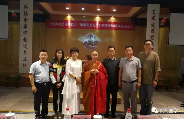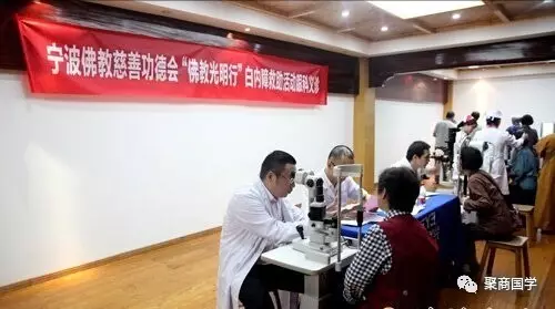 此次‘佛教光明行’项目的举办方为宁波佛教慈善功德会。受助人主要是社会上有白内障眼疾的贫困老人。为了更好的推行自己的宗旨,聚商国学院一直在寻找机会帮助更多的人,此次活动因为有了普世基金会李丹秘书长的引荐,我们才有机会参与进来,聚商国学研究院感到非常荣幸。宁波市民族宗教局副局长许伯强,宁波市佛教协会会长、宁波佛教慈善功德会会长诚信大和尚,宁波市佛教协会副会长界源法师、宗立法师、有圆法师、徐文芳等也参加了此次活动.