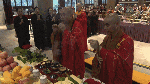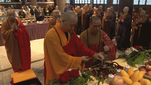 诚信大和尚(右)、界源大和尚拈香(左)